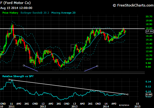 US Steel (X) Weekly chart, breaking out from a nearly 4-year base formation.